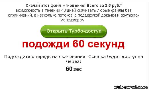 Если тебе нравится наш прикольный сайт и у тебя есть мобильный телефон и тебе не сложно нам помочь, при этом ты одновременно поможешь и себе(у тебя увеличится в несколько раз скорость скачивания и ты можешь скачать больше фильмов и мультфильмов на 25 Гб в день) отправь недорогое СМС.